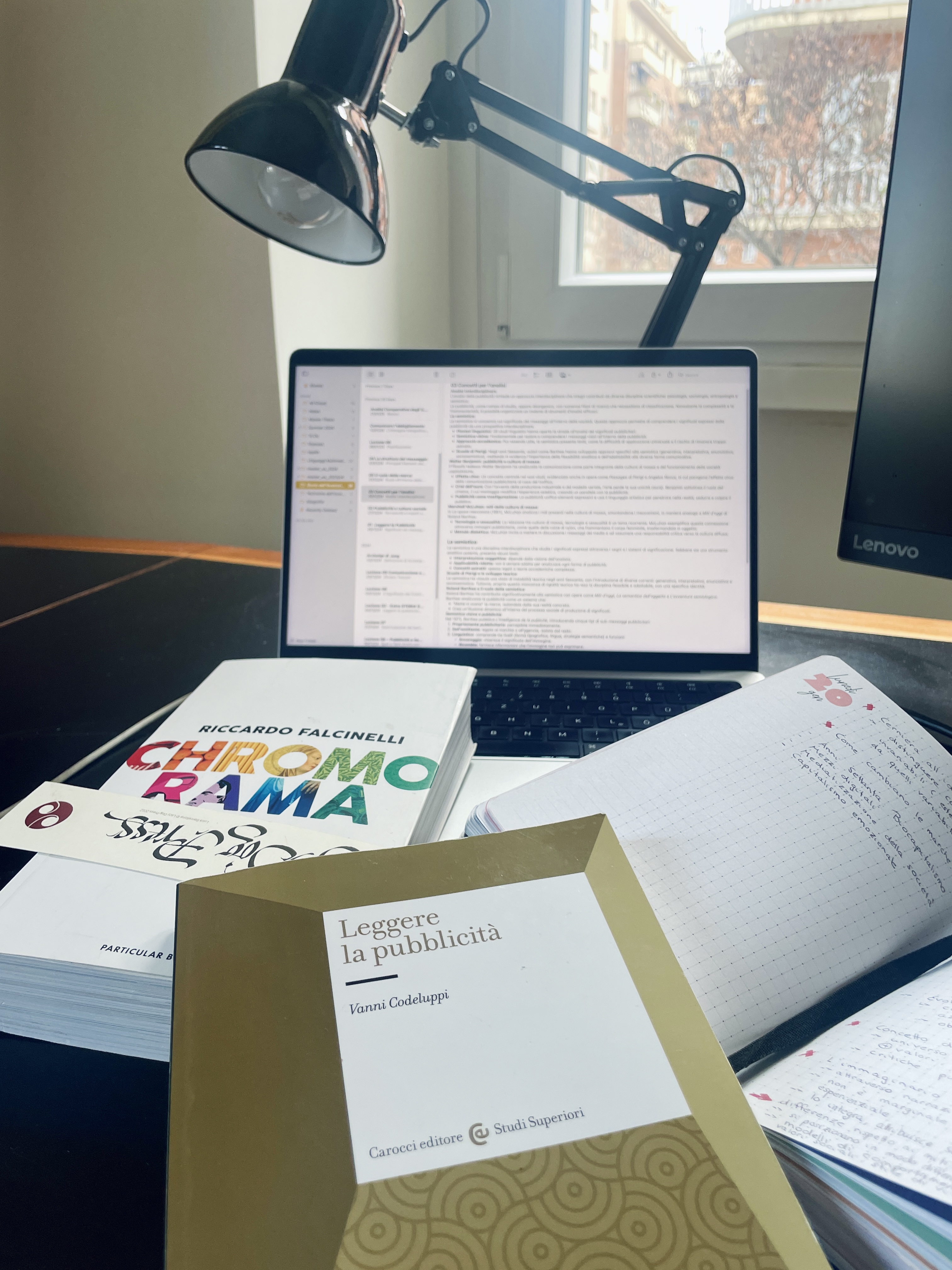 This theoretical course explored the history of advertising (storia della pubblicità) in Italy. Lectures were entirely in Italian. Topics included the development of Italian advertising campaigns (campagne pubblicitarie italiane), psychological effects of advertising (effetti psicologici della pubblicità), consumer-critical theories (teorie critiche del consumo), and semiotic and sociological analysis methods (analisi semiotica).