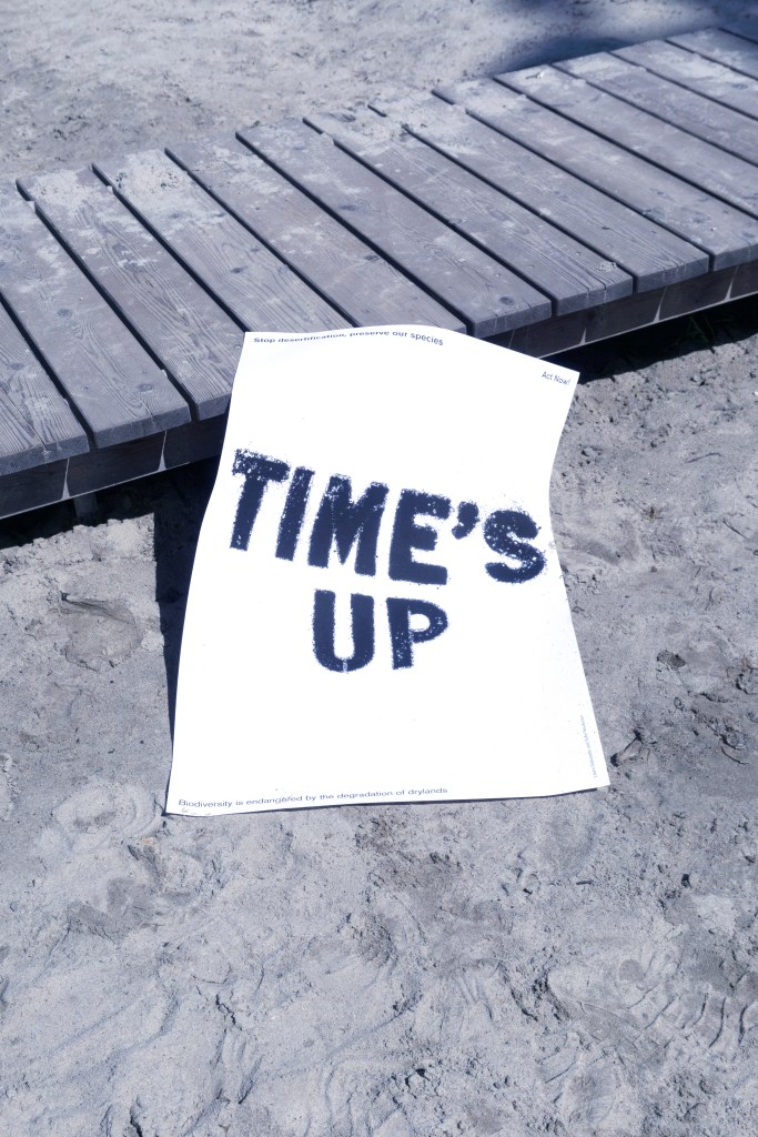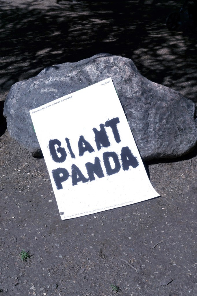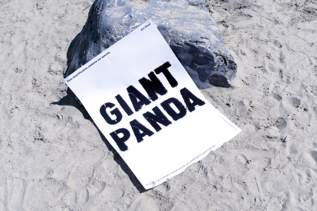 After researching the alarming data and predictions on desertification and recognising it as a global issue, we selected six representative species — Giant Panda, Koala, Gazelle, Cheetah, Baobab, and Sinai Primrose. We created typographic designs from real sand that is blown away, the dissolving process symbolises extinction, while our slogans emphasise the urgent need for action.