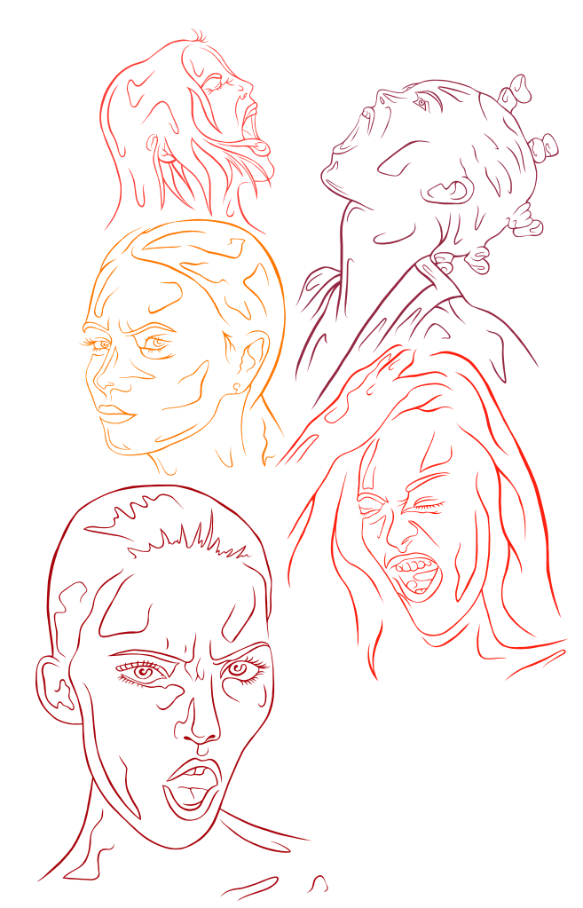 Initial ink pen studies expressing joy for my illustrated book Layers of Feeling.