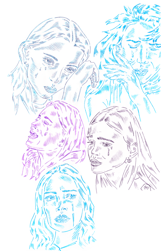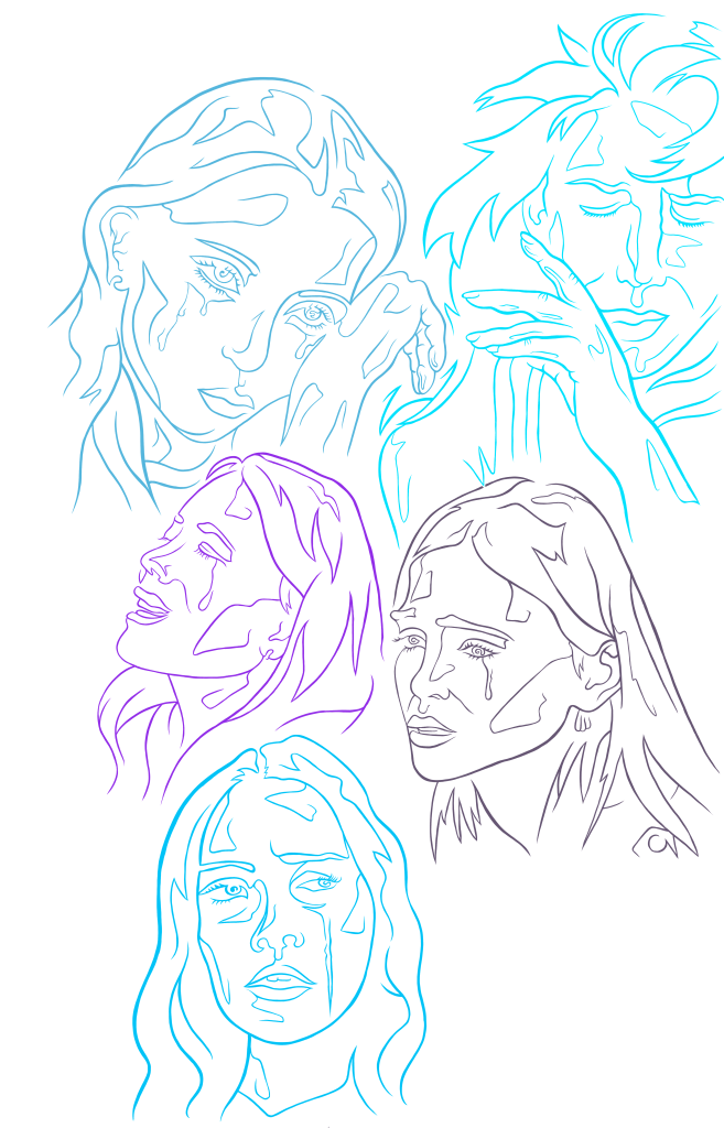 Early ink pen sketches capturing subtle shades of sadness for my illustrated book Layers of Feeling.
