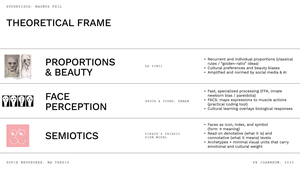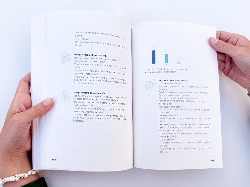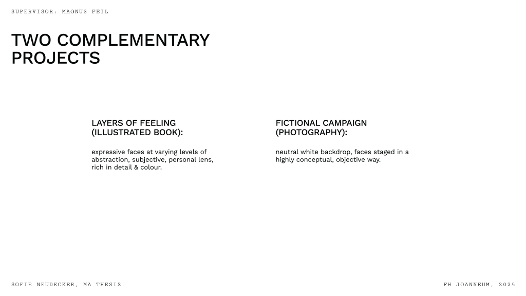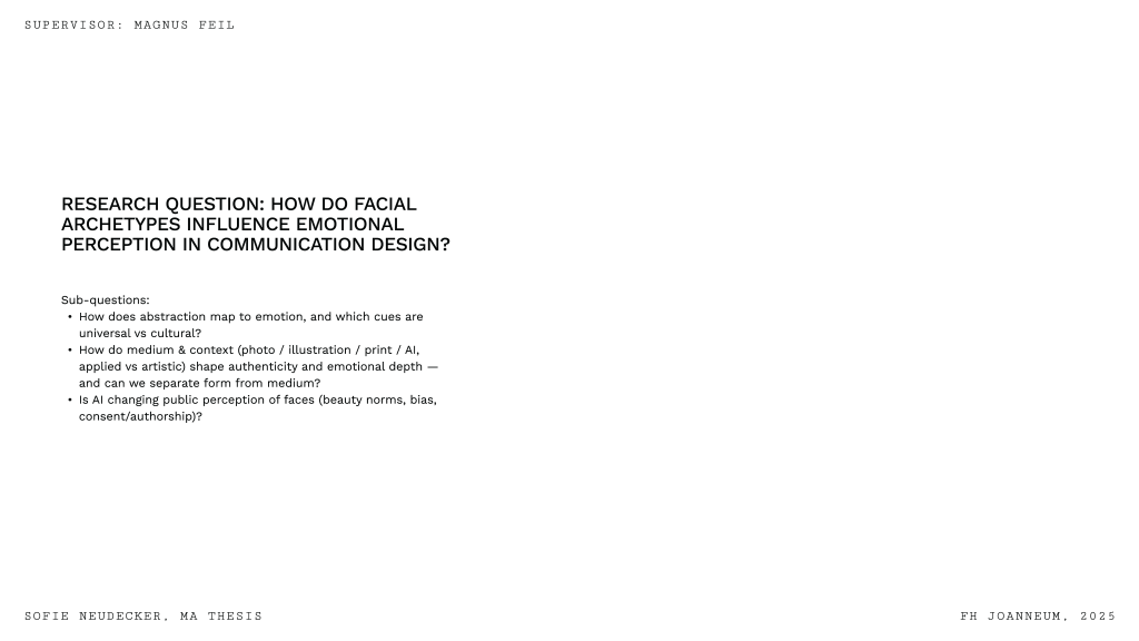 Shaping Emotion examines how simplified “facial archetypes” function as a compact semiotic system that shapes emotional perception in visual communication. Drawing on semiotics, psychology, and neuroscience, the thesis combines a historical survey, small empirical studies, the illustrated book Layers of Feeling, an ambiguous photographic ad campaign, and a brief AI-assisted experiment to probe authenticity and beauty ideals.